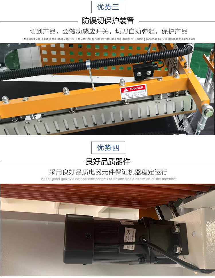 • 由動(dòng)力電機(jī)、傳送帶和滾筒等部件組成。動(dòng)力電機(jī)為傳送帶提供動(dòng)力,傳送帶的速度可以根據(jù)產(chǎn)品的大小、包裝速度的要求進(jìn)行調(diào)節(jié)。滾筒用于支撐和引導(dǎo)傳送帶的運(yùn)行方向,確保產(chǎn)品能夠平穩(wěn)地在機(jī)器內(nèi)傳送。傳送帶一般采用耐磨、耐高溫的材料,以適應(yīng)封切和熱收縮過程中的高溫環(huán)境。