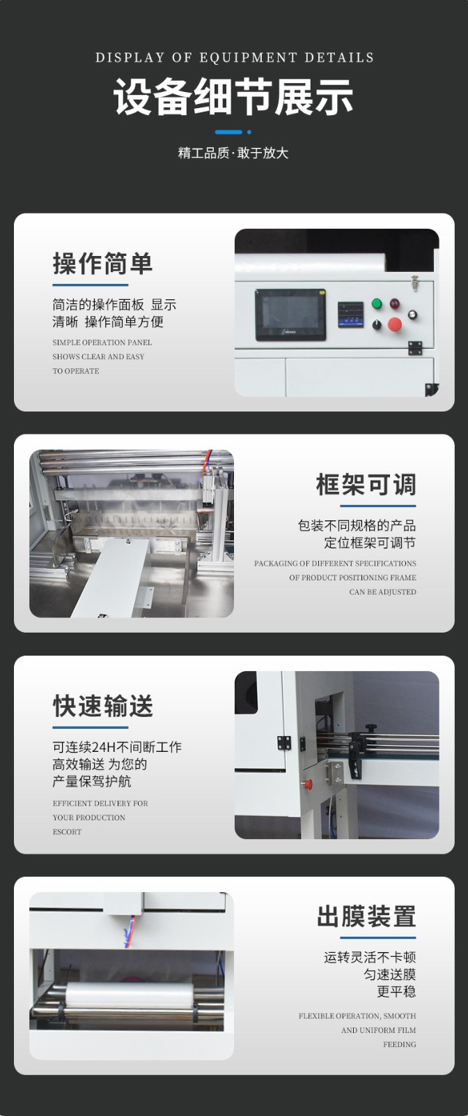 • 每天工作結(jié)束后,首先要關(guān)閉袖口式包裝機的電源,確保機器處于斷電狀態(tài),以保證清潔人員的安全。然后使用干凈、柔軟的濕布擦拭機器的外表面,包括機身外殼、控制面板等,去除灰塵、油污和其他雜物。對于難以擦拭的污漬,可以使用溫和的清潔劑,但要避免清潔劑進入機器內(nèi)部。
