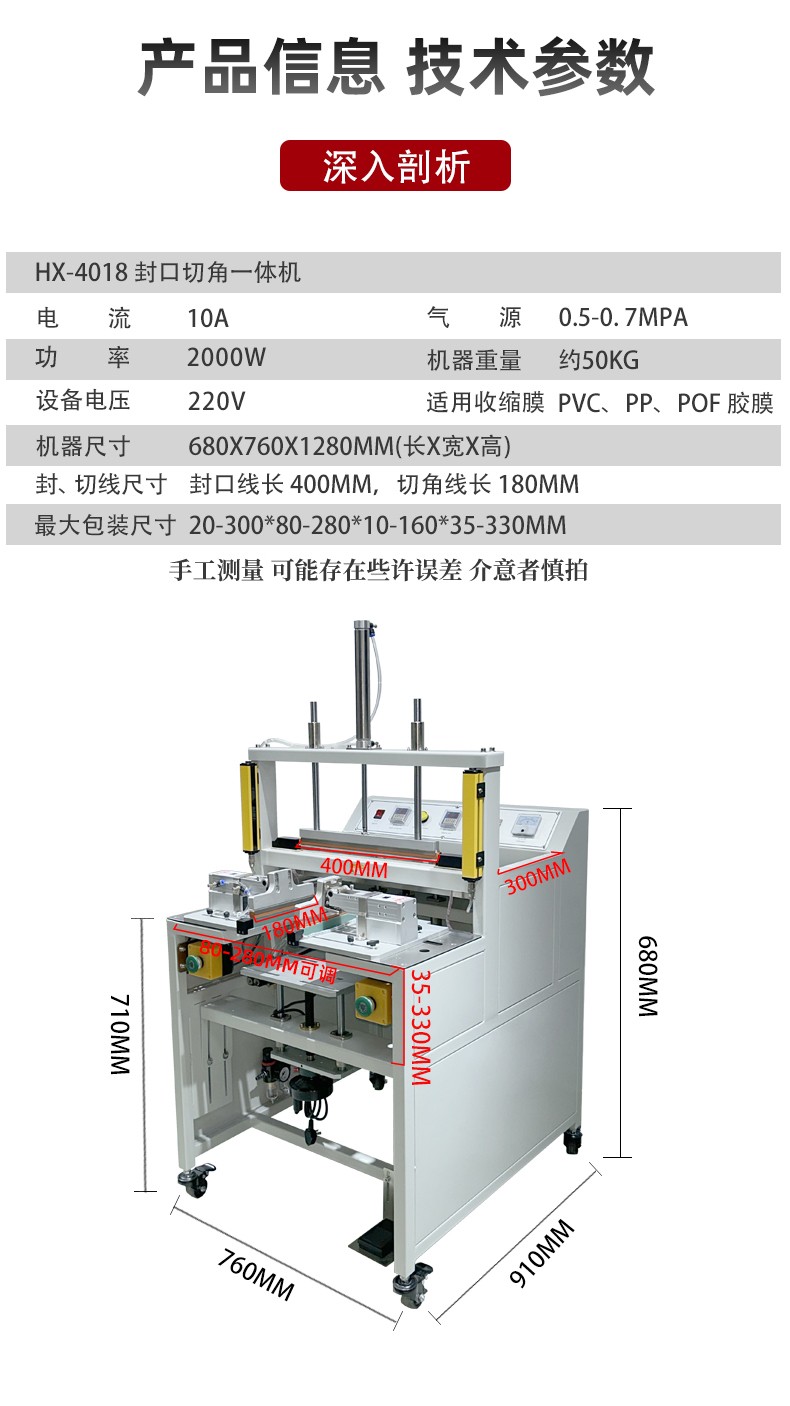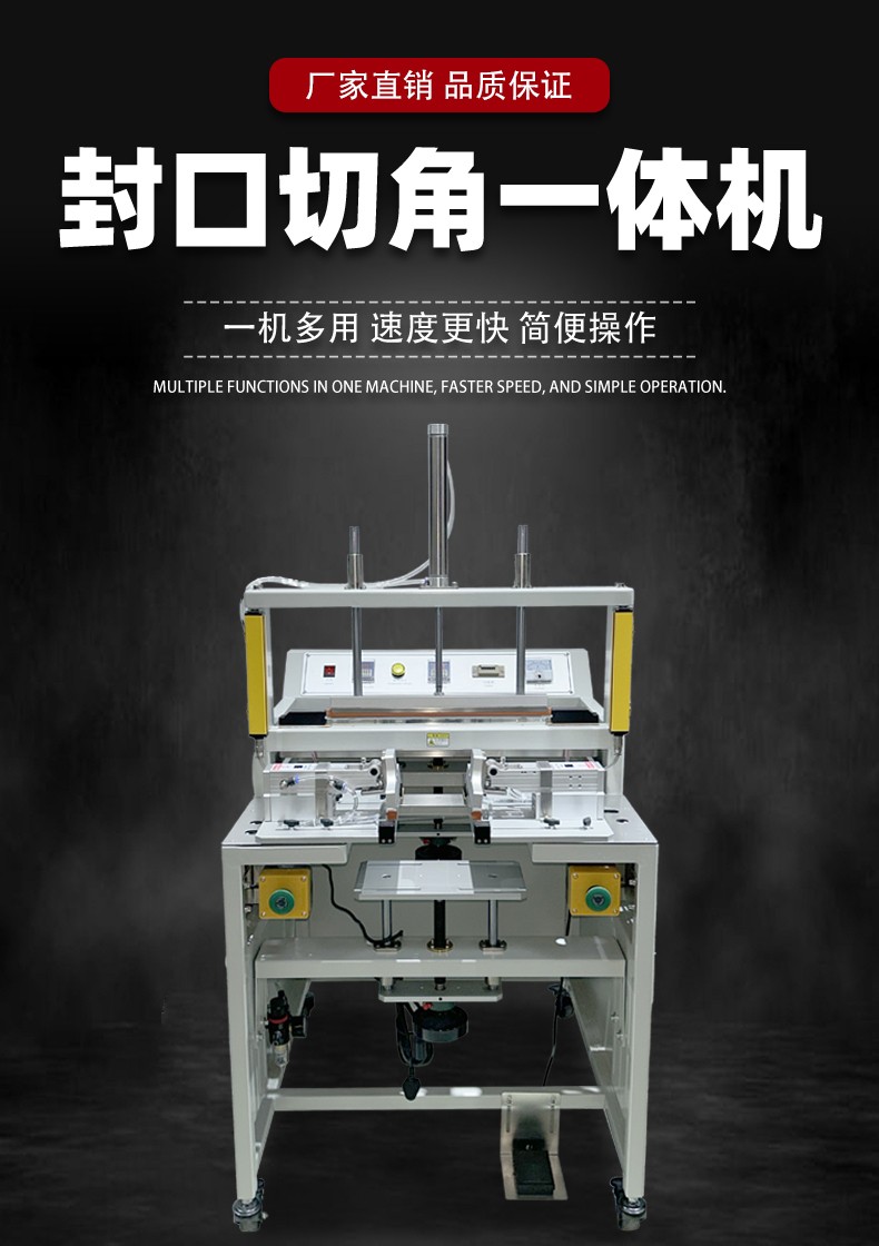 氣動封口切雙角雙邊封口切角一體機 套袋包膜打包袋收縮膜封口切角一體機