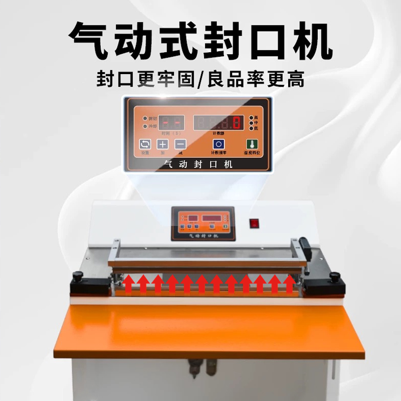 - 氣動(dòng)封口:利用壓縮空氣驅(qū)動(dòng)氣缸,帶動(dòng)封口部件運(yùn)作。電器脈沖技術(shù)使發(fā)熱元件發(fā)熱,在熱量和壓力共同作用下,實(shí)現(xiàn)包裝材料的封口。