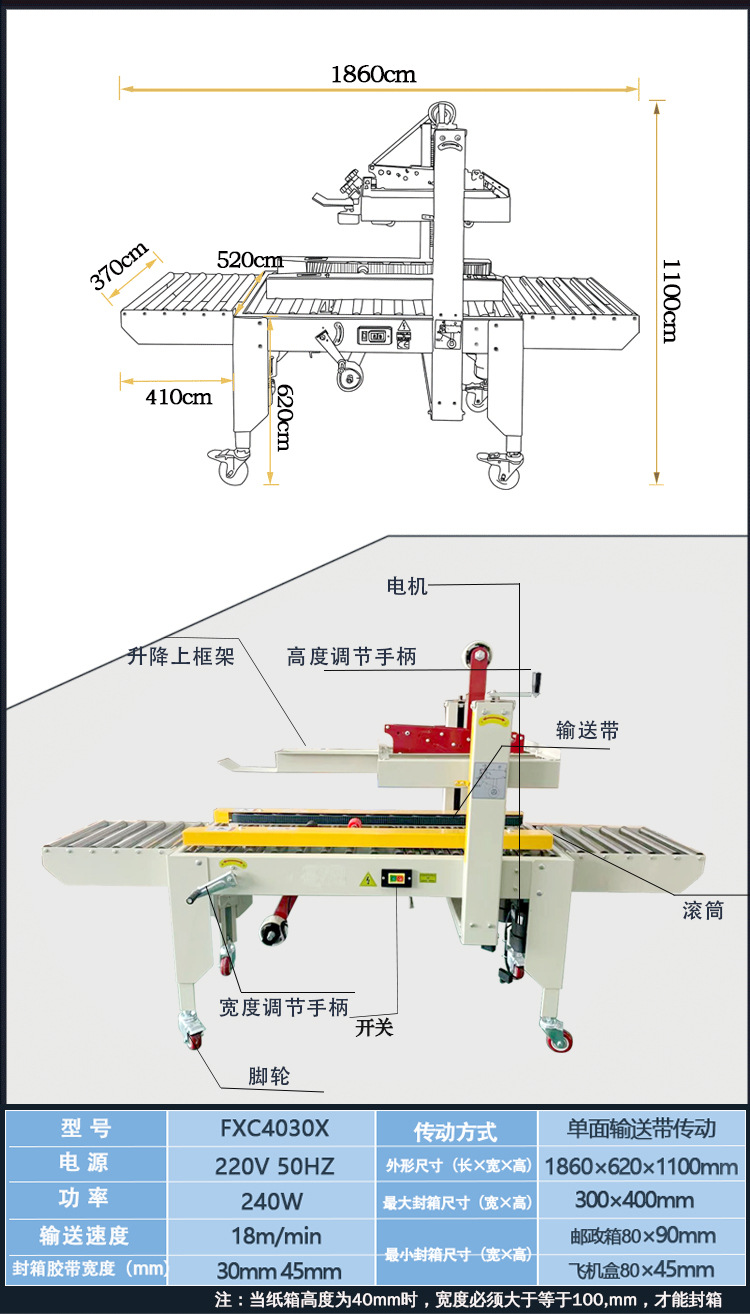 FXC4030X-飛機(jī)盒牛皮紙膠帶封箱機(jī) 自動(dòng)封口機(jī) 封箱器設(shè)備封箱打包器