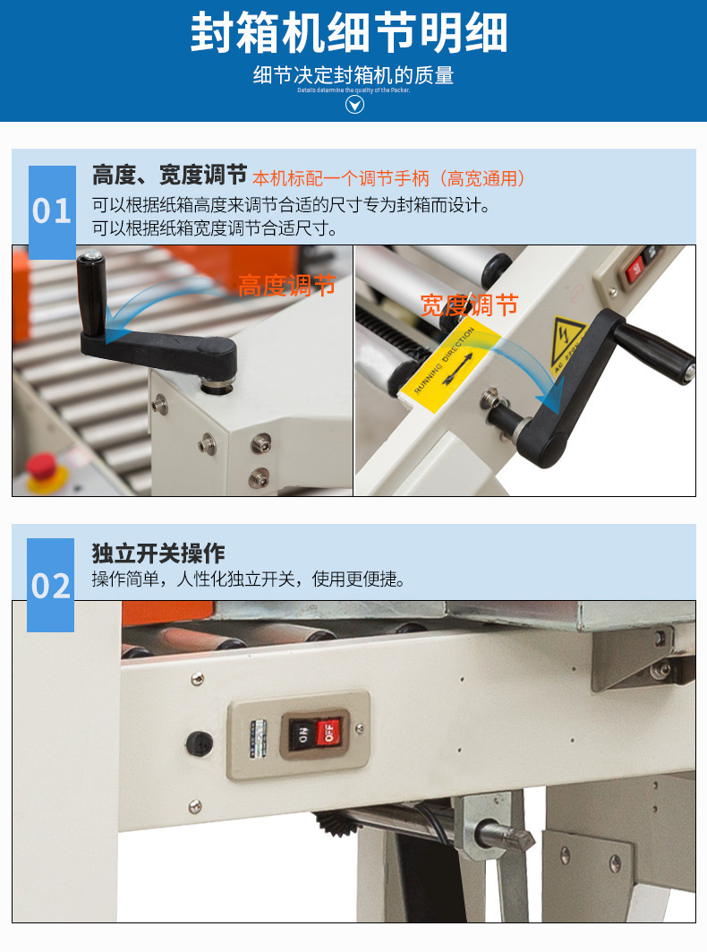 為您介紹一款功能強(qiáng)大、操作簡便的封箱機(jī)。首先,這款封箱機(jī)采用了先進(jìn)的自動控制技術(shù),只需通過操作面板上的按鈕,即可實現(xiàn)封箱動作,無需繁瑣的操作步驟。同時,該封箱機(jī)還具備多種封口方式,如熱熔封口、膠帶封口等,滿足不同產(chǎn)品的需求。