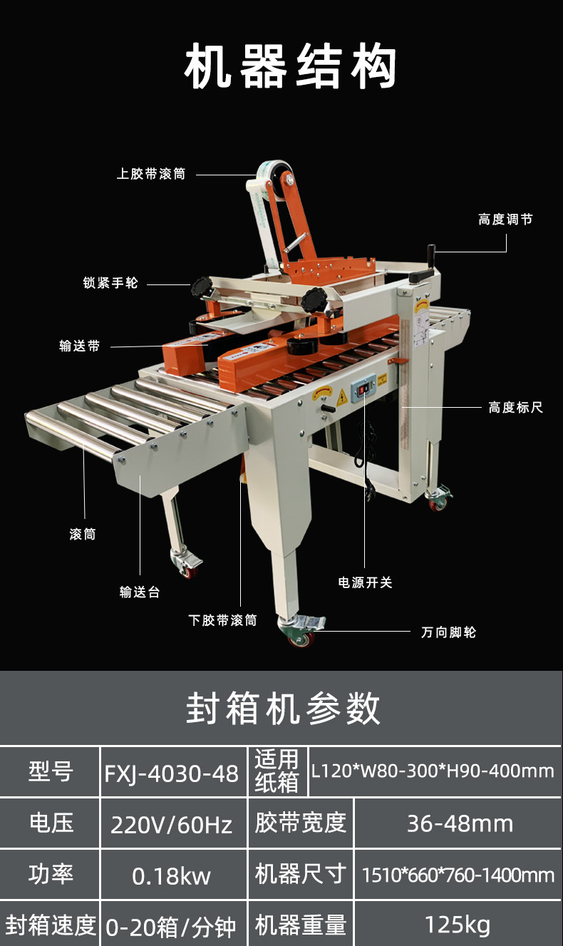 封箱機,也稱為Case sealer machine,主要用于紙箱的封箱包裝。它們不僅適用于單機作業(yè),也可以與流水線配套使用,是包裝流水線作業(yè)中不可或缺的設(shè)備。封箱機的功能包括自動折疊、粘合和封口紙箱,通過先進的感應(yīng)和控制技術(shù),能夠自動檢測和調(diào)整紙箱尺寸,按照設(shè)計要求進行折疊和封口操作,大大提高了包裝的效率和一致性,減少了人工操作的錯誤和勞動強度。